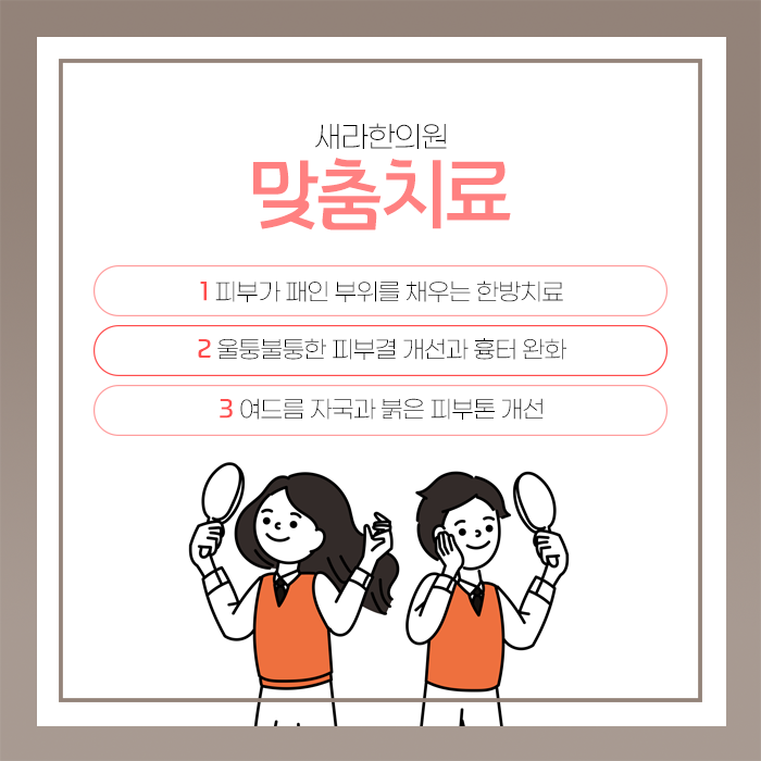 여드름은 다양한 종류가 있으며 이로 인해 스트레스를 받고 있다면 혼자 고민하지 말고 본원에서 치료받으시기 바랍니다. 여드름이 심한 경우 자신감 저하로 이어질 수 있습니다. 마곡동여드름자국한의원에서는 개인의 피부 타입, 두께, 여드름 종류, 체질 등을 고려하여 적합한 치료를 제공하고 있습니다.