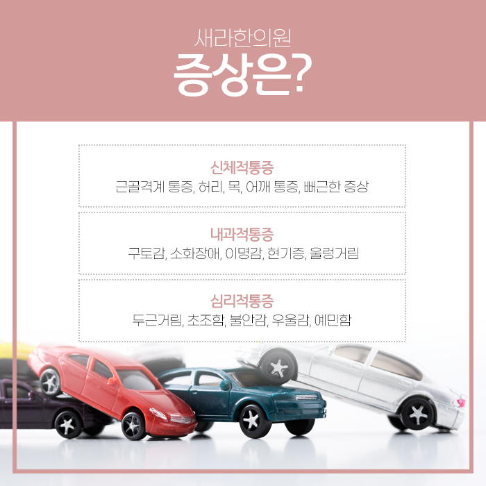 이처럼 교통사고로 인한 신체적, 심리적 증상은 복합적이며 적절한 치료와 관리가 필요합니다. 사고 후에는 몸 상태를 세심하게 살피고 어떠한 증상이 나타나더라도 이를 간과하지 말고 진단을 받는 것이 중요합니다. 갑작스러운 사고는 예측하기 어려워 사고 충격이 크게 느껴질 수 있습니다.