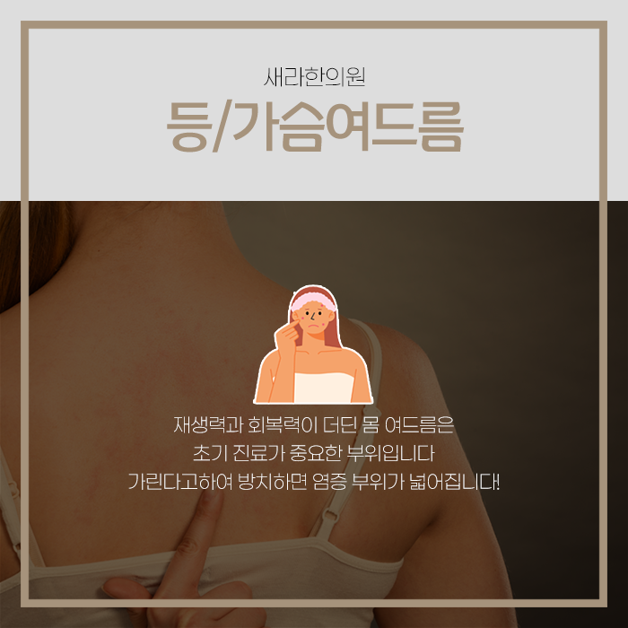 방화가슴여드름 옷의 마찰로 심해질 수 있는 부위이기에
