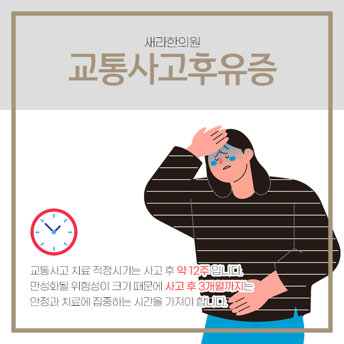 연휴가 되면 도로 위의 차량 수가 급격히 늘어나 혼잡한 상황이 발생합니다. 교통사고 발생률이 증가하고 예기치 못한 사고가 발생할 수 있습니다. 사고 당시에는 특별한 증상을 느끼지 못할 수 있지만 며칠이 지나면 몸의 여러 부위가 아프고 근육통이 생기며 잠을 제대로 자지 못할 정도로 심해질 경우 교통사고 후유증을 의심해야 합니다.