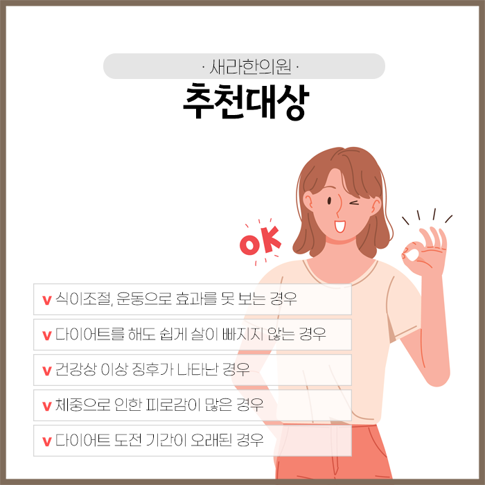 다양한 치료 방법이 결합되어 효과적인 다이어트 결과를 이끌어냅니다. 체중 감량 과정에서 영양소의 결핍이나 불균형이 발생하면 면역력 저하, 기력 감소, 스트레스 증가 등의 부작용이 나타날 수 있습니다. 지나치게 칼로리를 제한하면 에너지가 부족해지고 일상생활에서의 피로감이나 집중력 저하로 이어질 수 있습니다.