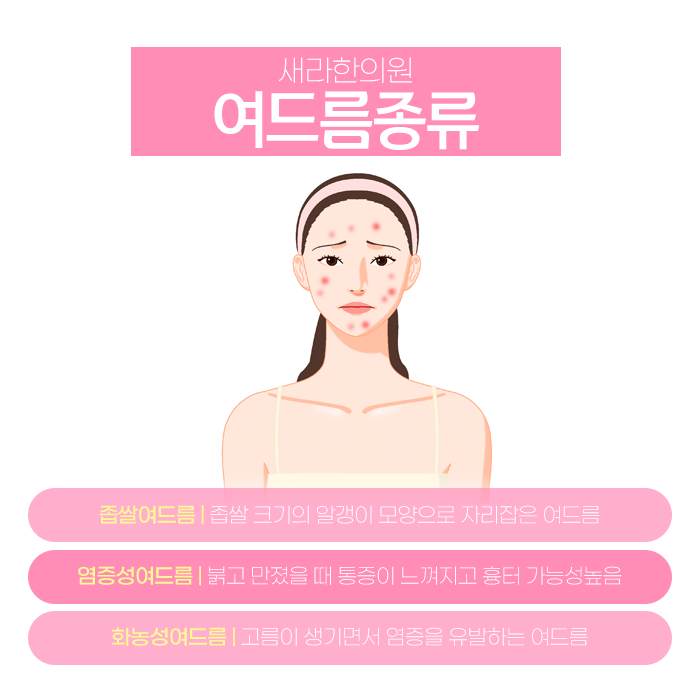 겉보기에는 비슷해 보일지라도 여러 형태가 있으며 각기 다른 치료 접근법이 필요할 수 있습니다. 단순히 한 가지 원인이 아니라 좁쌀, 염증성, 화농성 등 생기는 부위, 원인이 환자분마다 모두 다르고 복합적입니다. 게다가 각자가 가진 체질이나 몸 상태, 생활 습관 또한 모두 다릅니다.