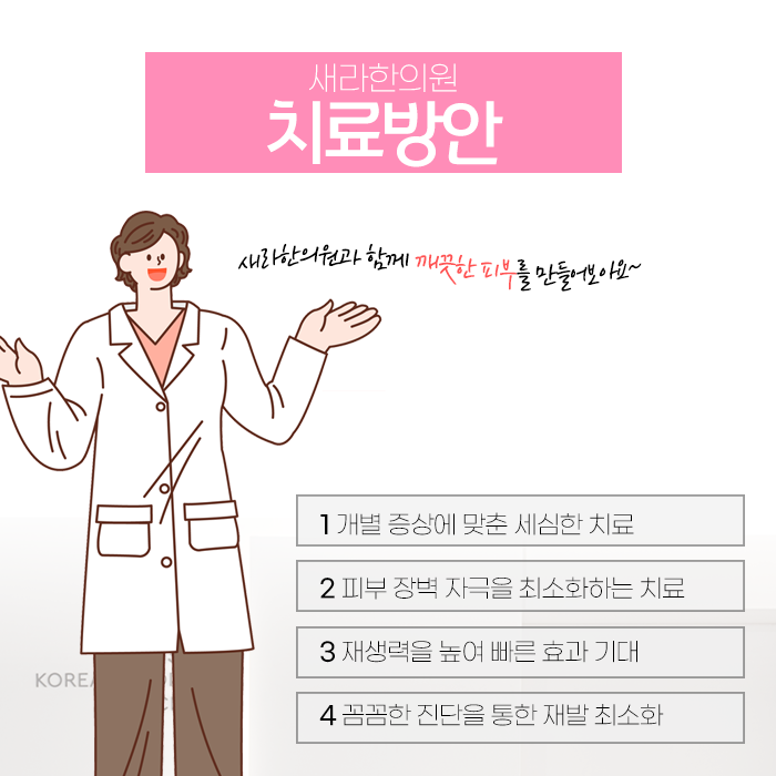 인터넷 정보나 다양한 홈케어를 시도하다가 오히려 증상이 더 나빠져서 뒤늦게 의료기관을 찾아오시는 경우가 많습니다. 건강하고 깨끗한 피부를 위해서는 눈에 보이는 여드름을 손으로 건드리거나 검증되지 않은 방법으로 겉만 관리하는 것을 넘어 원인을 정확히 진단하고 체계적인 치료를 받는 것이 중요합니다.