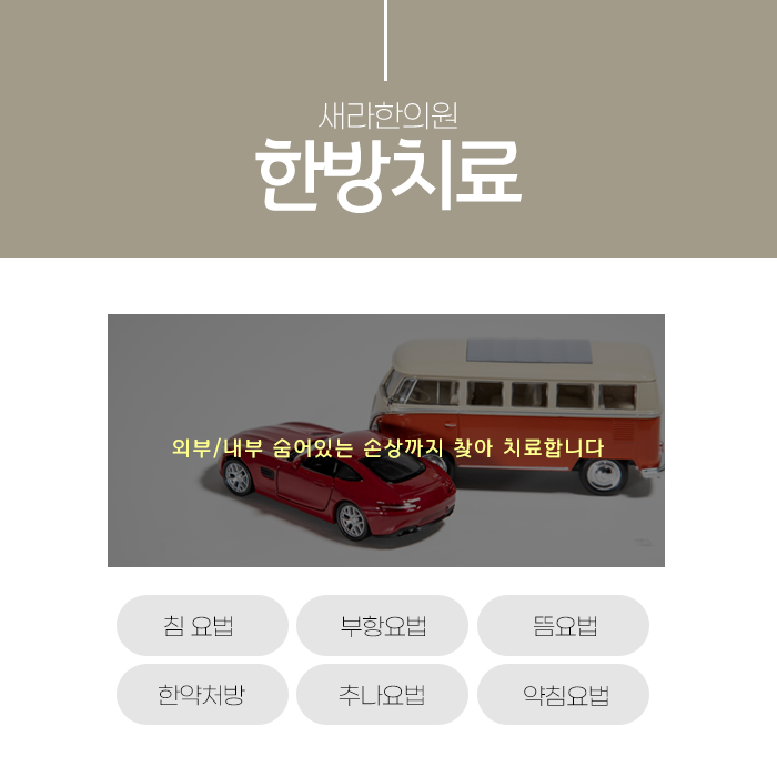 방화동주말진료한의원에서는 현재 몸 상태를 세심하게 살피고 정확히 진단하여 사고로 인한 아픔과 불편함을 개선하고 있습니다. 사고를 겪으신 후 몸에 작은 문제라도 느껴지신다면 혹은 당시의 충격이 신경 쓰인다면 방화동주말진료한의원을 찾아 몸 상태를 정확히 진단받고 만성적인 문제로 굳어지지 않도록 서둘러 관리받으시는 것이 중요합니다.