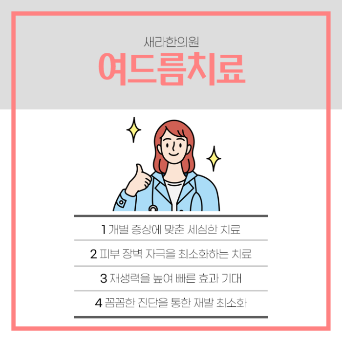 섣부른 자가 관리보다는 도움을 받아 정확한 진단을 받고 치료를 받는 것이 가장 효과적입니다. 붉게 솟아오른 뾰루지, 피지 분비, 피부 결 때문에 거울을 볼 때마다 한숨만 쉬게 되는 분들이 많습니다. 꿀피부를 갖고 싶지만 기대만큼 큰 효과를 보지 못하고 실망하는 경우가 많습니다.