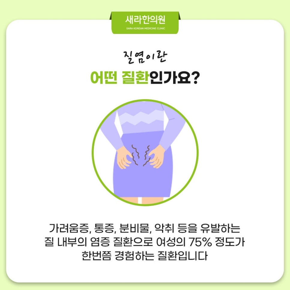 여성이라면 누구나 한 번쯤 경험하는 질염은 굉장히 흔한 질환 중 하나랍니다. 질염은 질 내부에 생긴 염증으로 유발되는 질환으로 가려움증을 동반하는 분비물에 악취가 생길 수 있으며 심한 경우 통증을 동반합니다. 이런 질염은 원인균에 따라 증상의 양상이 조금씩 달라지는데요. 질염은 원인균에 따라 세균성 질염, 칸디다 질염, 트리코모나스 질염, 위축성 질염 등으로 분류하고 일부 질염의 경우 배우자의 치료가 함께 필요할 수 있습니다. 질염은 치료를 마무리하여도 재발 가능성이 높은 질환인데요. 만약 만성 질염으로 이어지면 많은 불편을 초래할 수 있어 주의해야 한답니다. 그러면 질염은 무엇으로 발생하는 걸까요? 질염은 생식기 위생 관리가 미흡한 경우, 극단적인 다이어트를 한 경우, 과도한 스트레스를 받는 경우, 불규칙한 생활습관을 지속할 경우, 수면이 부족한 경우 등 여러 요인으로 신체 면역력이 떨어지면서 주로 발생한답니다.