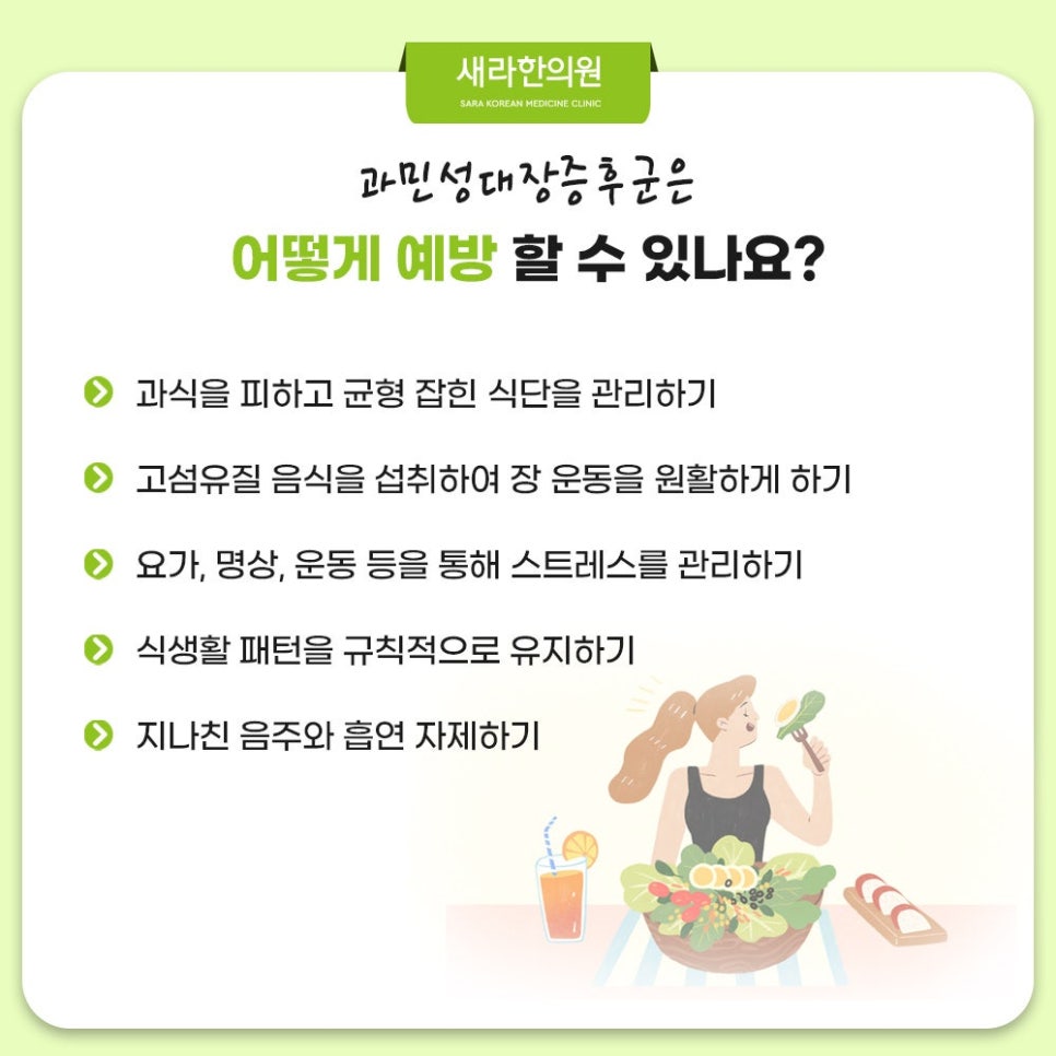 과민성대장증후군을 예방하며 재발을 방지하기 위해서 일상생활의 관리가 중요한데요. 특히 식단 관리 및 스트레스 조절은 과민성대장증후군의 증상을 완화하는데 도움될 수 있습니다. 오늘은 과민성대장증후군 주요 증상 그리고 제공할 한의학적 신방화과민성대장증후군치료한의원 치료법을 소개드렸는데요. 추가적 정보가 필요하거나 궁금하신 점이 있다면 방문을 통해 상담을 받아보세요. 감사합니다.