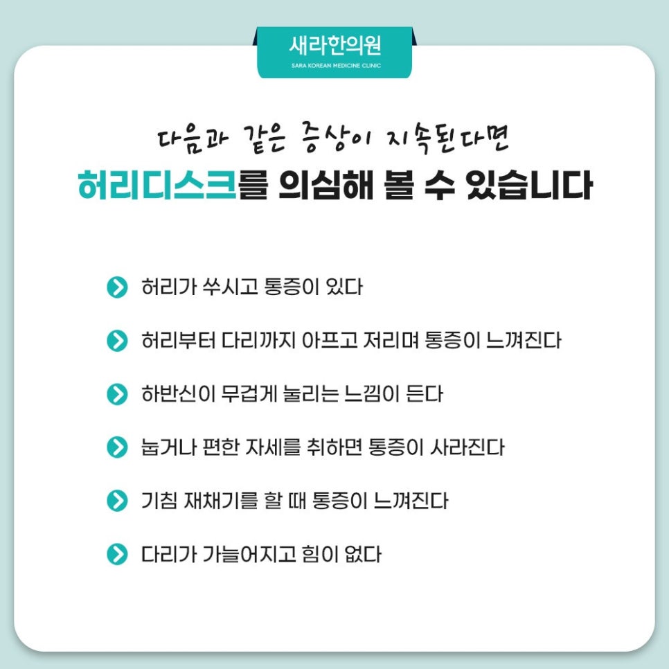 오늘은 주요 증상과 함께 강서구척추디스크 치료로 도움 될 저희 한의원의 여러 한방 치료 요법을 설명드렸는데요. 저희 한의원에서는 다양한 질환과 관련된 통증 치료를 한의학적 요법을 활용해서 진행합니다. 환자분들의 건강을 우선적으로 생각하는 저희 한의원에서 제공하는 한의학적 치료 요법과 관련해 더 세세히 알고 싶은 내용이 있으시다면 저희 한의원으로 찾아주세요. 저희 한의원에서는 환자분의 건강을 위해 늘 성실하게 진료하도록 노력할 것입니다. 감사합니다.