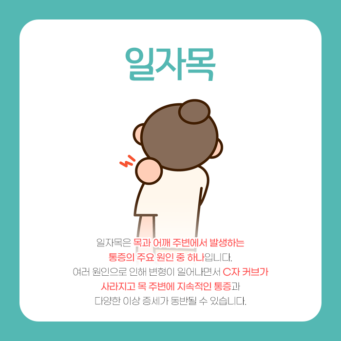 마곡일자목은 정상적인 목뼈의 C자 커브가 사라지고 목뼈가 일직선으로 펴진 상태를 말합니다. C자 커브는 충격을 흡수하는 역할을 하는데 일자목이 되면 기능이 제대로 작동하지 않아 목에 가해지는 부담이 증가합니다.