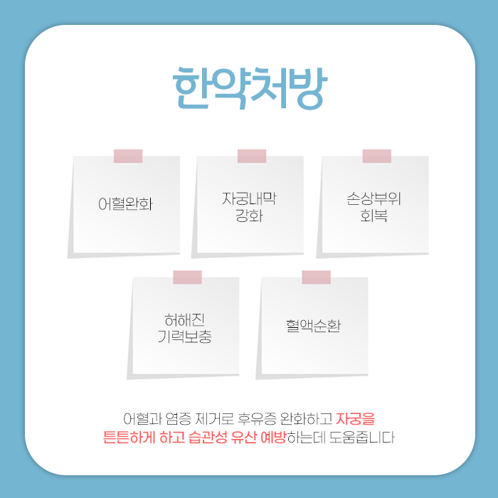 자궁의 수축과 회복을 돕고 생리 주기를 정상화하며 다음 임신을 위한 건강한 자궁 환경을 만드는 데 초점을 맞춰야합니다. 감사합니다.