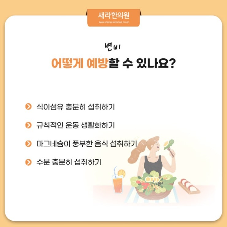 생활 습관 개선으로 충분히 예방할 수 있는데요. 일상에 변비 예방을 위해선 대장의 연동 운동을 촉진하는 식이섬유를 충분히 섭취해주는게 중요하답니다. 그리고 충분한 수분 섭취는 신방화역변비 예방으로 도움이 되는데요. 식이섬유는 장 내 노폐물과 독소 제거를 돕고 이는 원활한 배변 활동을 촉진한답니다. 이와 함께 규칙적인 운동과 신체 활동도 예방에 중요한 역할을 하는데요. 오늘 저희는 변비와 관련해 유용한 건강 정보를 공유하였습니다. 만약 이에 대해 더 알고싶거나 추가적 질문이 있을 땐 언제든지 저희 한의원으로 연락주시길 바라겠습니다.