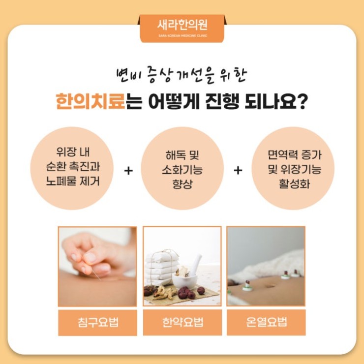 저희 한의원은 문제 개선을 위해 여러 한방 신방화역변비 치료법을 적용합니다. 변비 증상 개선을 위해서 저희는 위장 기능 저하를 개선하며 위장 기와 혈 순환을 원활하게 하며 체내 독소 제거와 소화 능력을 향상시키면서 면역력 강화하는 방법을 제공드립니다. 우리 한의원의 치료는 한의학 종합적 접근법으로 위장 질환의 근본 원인을 다루며 침술, 한약, 온열 치료 등 한방요법을 활용하는데요. 이런 치료법은 변비로 인한 불편함을 줄이며 환자분들의 건강한 소화 시스템 회복을 위해 제공드린답니다. 저희는 환자분들의 개별 상태와 필요에 따른 치료 계획을 제공하며 환자분들의 불편한 증상 개선을 돕습니다.