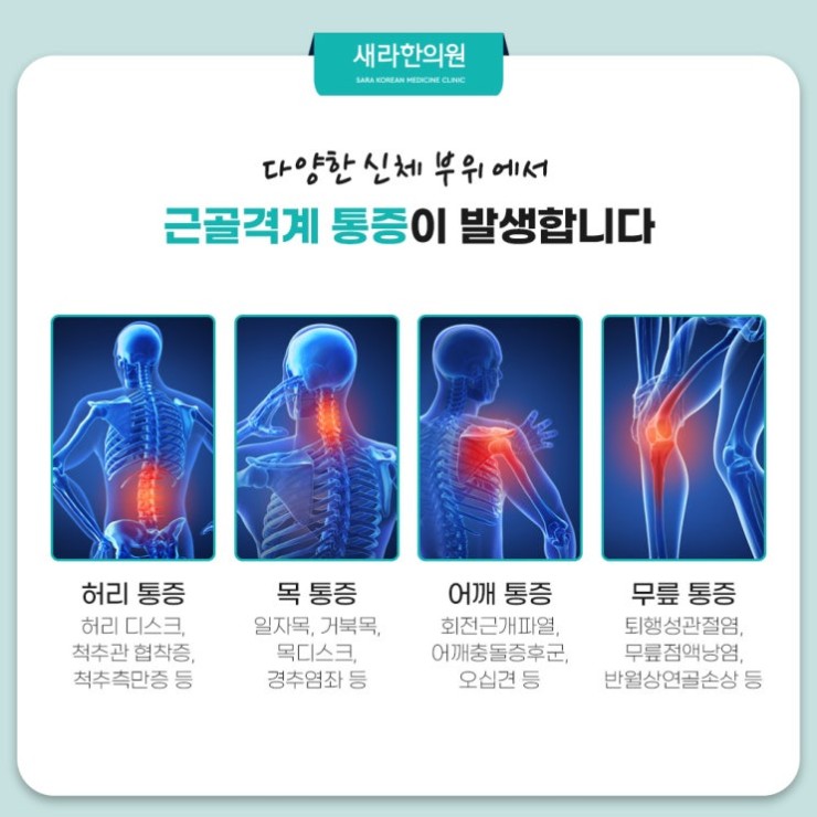 잘못된 자세는 목과 허리 통증을 유발하는 근골격계 질환의 주 원인 중 하나로 꼽히는데요. 특히 목 통증은 경추 문제인 일자목, 거북목, 목 디스크 등과 연결되며 허리 통증은 허리 디스크, 척추관협착증, 척추 측만증 등의 질환과 밀접한 관련이 있답니다. 장시간 앉아서 생활하는 현대인 사이에 이런 목과 허리 문제는 자주 발생하게 됩니다. 특히 디스크 문제는 척추 사이 추간판이 디스크가 이동하거나 신경을 압박해 발생하는 통증이랍니다. 이는 잘못된 자세로 인해 척추가 변형되면서 발생하는 근골격계 질환 중 특히 심각한 질환으로 다양한 근골격계 문제 중에 신방화체형교정 주목할 필요가 있는 상태이기도 합니다.