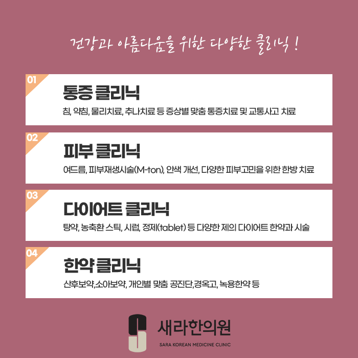 그런 새라한의원으로 오셔서 건강과 아름다움을 위한 변화, 일상의 변화를 시작해 보세요.