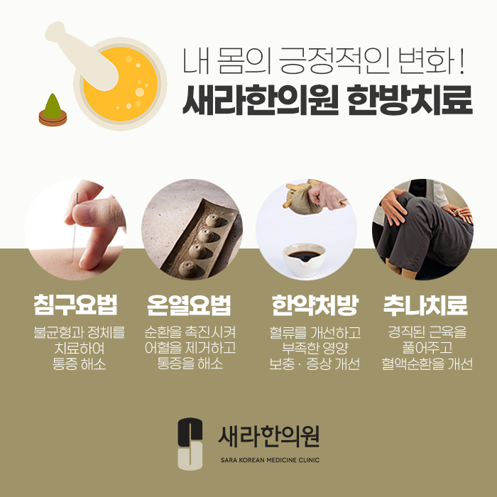 새라한의원은 세심한 진단 및 치료로 증상을 개선할 뿐만이 아니고, 건강한 상태를 쭉 유지하실 수 있게 돕고 있습니다.