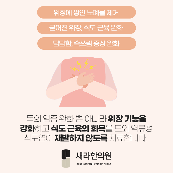 식도의 근육이 회복될 수 있게 도와주어 역류성 식도염이 재발하지 않도록 치료합니다.