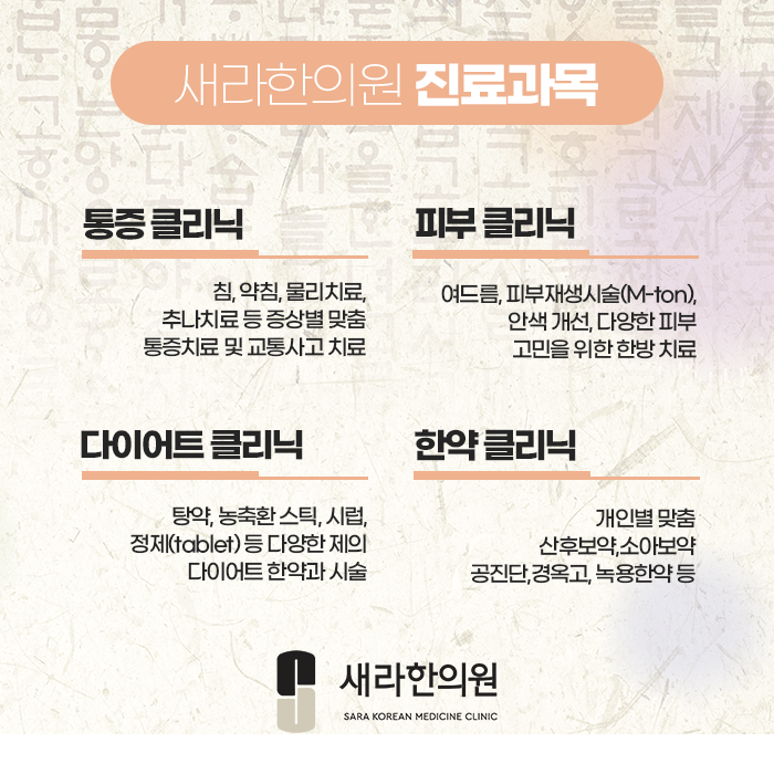 침, 약침, 뜸, 부항 등 풍부한 노하우를 바탕으로 하는 숙련된 한방 시술은 기혈의 순환을 개선해가면서 혈액 순환을 이롭게 하면서 염증을 제거해 주는데요.