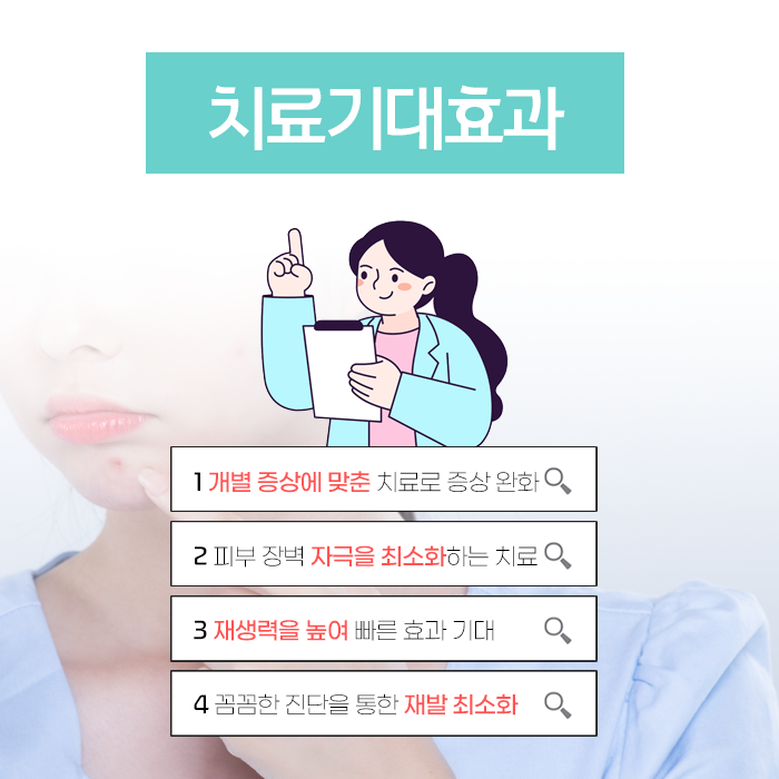 한약처방과 함께 여드름 관리 및 치료를 병행하면 더욱 효과적인 결과를 기대할 수 있습니다. 여드름 부위의 염증을 가라앉히고 여드름 자국이나 흉터 회복을 돕습니다.