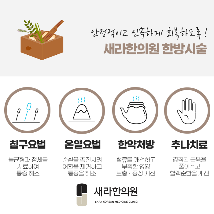 수술 후에 통증으로 고민하시는 분들도 새라한의원으로 오셔서 통증 완화 치료를 받아보세요.