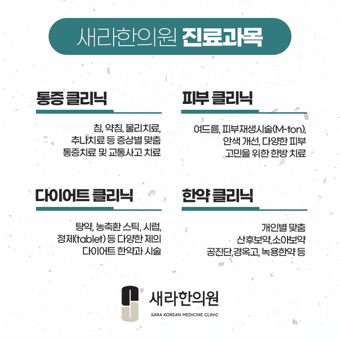 증상 개선 및 재발 방지를 위해 한 분 한 분 최선을 다하는 새라한의원이 될게요.