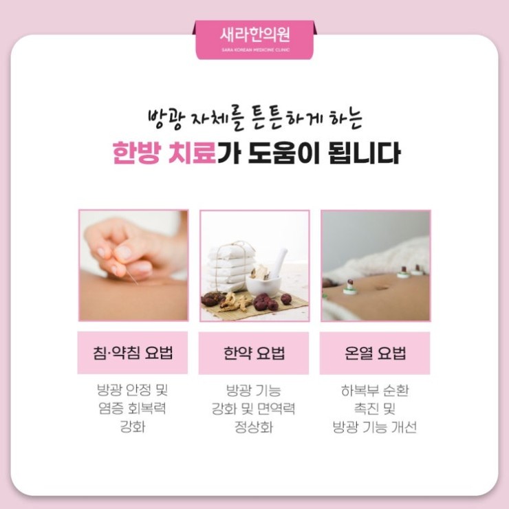 별도의 염증이 있는 상황이라면 약침요법으로 염증 상태를 개선하는 것에 도움을 받으며 이 외에도 한약 처방 및 온열요법을 다양하게 활용해 면역 기능을 증진시켜 자연스레 방광도 건강한 형태를 유지하도록 도와서 빈뇨 등의 배뇨장애를 치료해 삶의 궤도를 안정화시켜보는 것에 적극적인 도움을 드리려 한답니다.