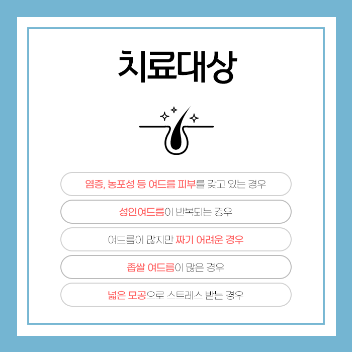 여드름은 피지선과 피지가 배출되는 통로인 모낭에 염증성 반응이 일어나는 피부 질환에 해당됩니다. 피지선이 과도하게 피지를 분비하는 것이 여드름 발생의 시작입니다.