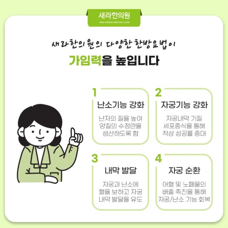 난임은 임신이 절대 불가능한 상태를 의미하는 건 아닌데요. 적합한 치료와 관리로 난임은 극복할 수 있는 상태입니다. 저희 한의원은 난임을 겪는 많은 환자분들께 한의학적 접근으로 치료를 제공하여 도움을 드립니다. 본원은 한의학적 난임 치료 주요 목적은 환자의 자궁 및 난소 건강 상태를 개선해 임신 가능성을 높여보는데요. 한방 치료는 임신 향상에 도움이 될 수도 있습니다. 저희 한의원은 각 환자의 개별 상황과 체질을 고려해 난임 원인 개선으로 체계적 강서구임신한약 방법을 통해 한방 치료를 진행한답니다.