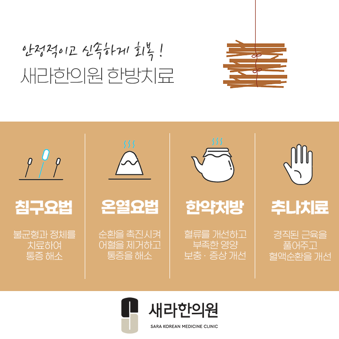 그러니 본인의 신체에서 긍정적인 변화를 찾아주는 새라한의원에서 치료받으시고 건강하고 안정적인 일상을 되찾아보세요.