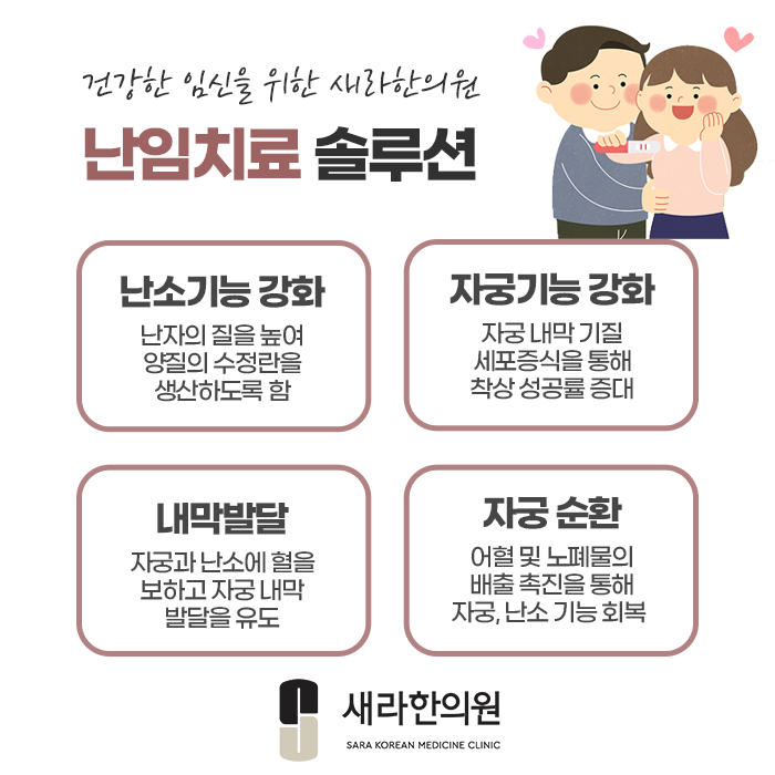 풍부한 노하우를 바탕하고 있는 새라한의원은 충분한 상담 및 진맥을 통하여 난임이 일어난 원인을 찾으면서, 그에 따른 대처법을 제안해 드립니다.