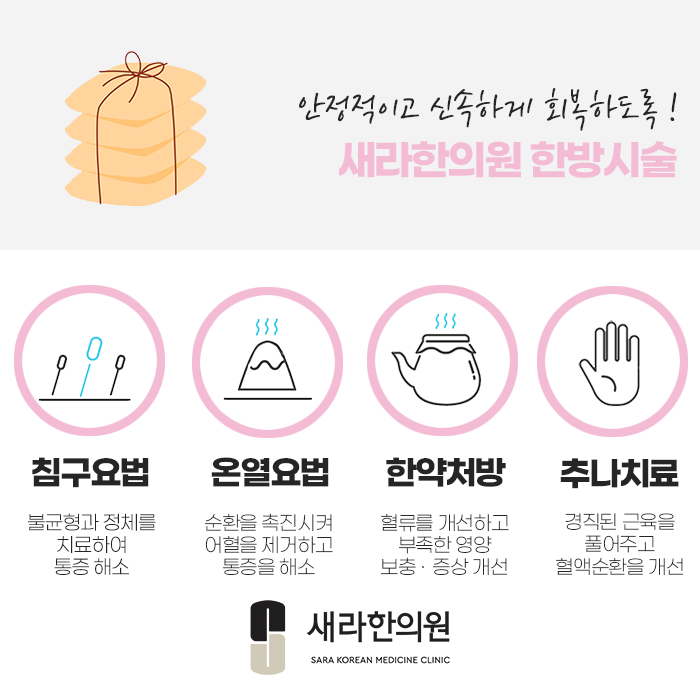 새라한의원에서는 골반 내의 면역 체계를 강화시켜주면서 병적 이상 분비물이 감소되도록 치료한답니다.