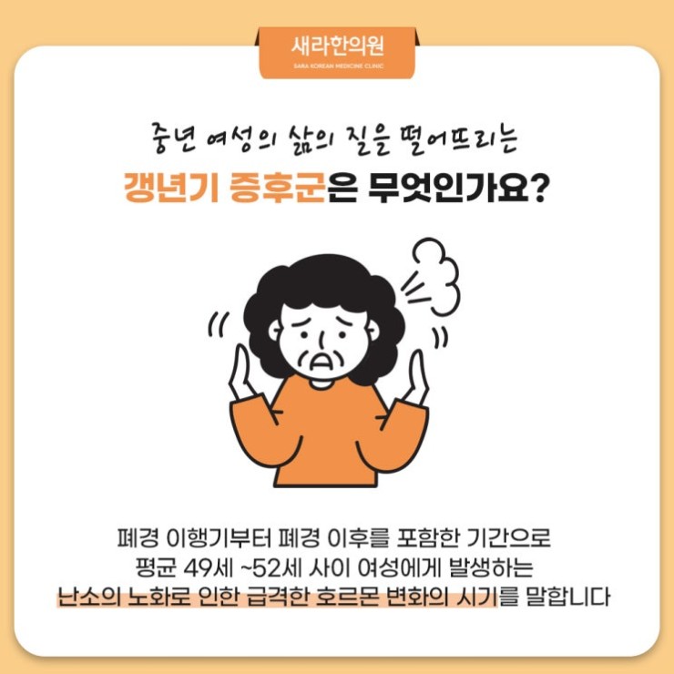 갱년기는 여성의 생에 중요한 전환점으로 여러 증상이 동반하는 특징이 있답니다. 갱년기를 겪는 여성은 배뇨 문제 및 기분 변동이나 방화얼굴열 그리고 수면 장애 혹은 얼굴 홍조 등의 여러 증상을 경험합니다. 이러한 갱년기 증상은 경미한 불편함부터 정상적인 일상생활을 어렵게 만드는 심한 증상에 이르기까지 다양한 정도로 발생해서 각별히 주의해야 할 것입니다.
