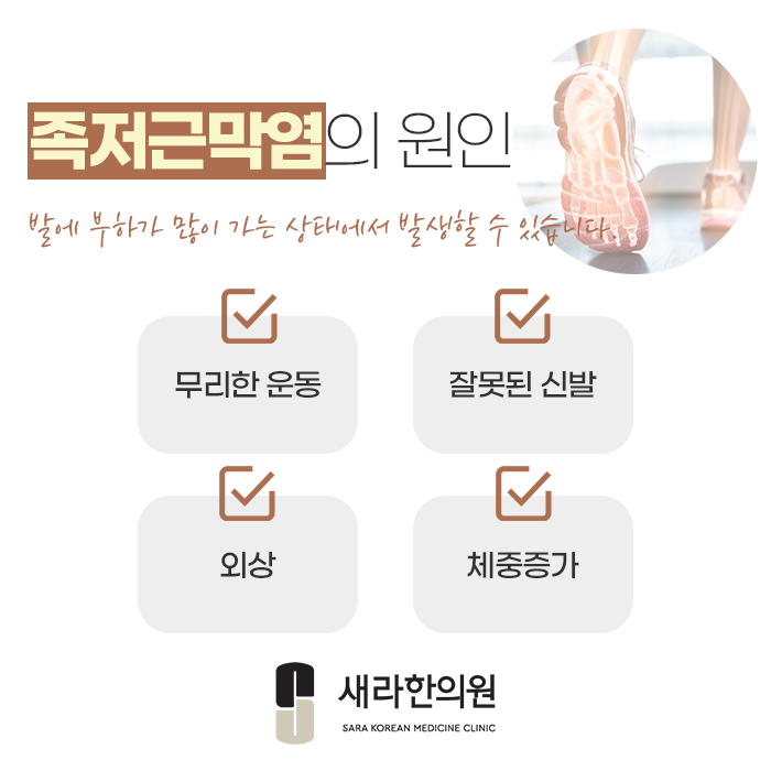 새라한의원에서는 족저근막염의 염증을 직접적으로 제거하면서 족저근막을 재생시키며, 증상을 유발시킨 원인 해소를 돕습니다.