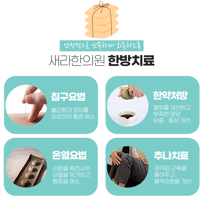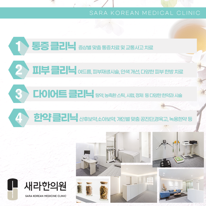 건강과 아름다움을 찾아드리고 있는 새라한의원에서는 다양한 질병과 문제점에 대하여 세심하게 진단하고 증상을 개선해드리면서 개선된 상태가 쭉 유지될 수가 있게 재발을 예방할 수 있도록 정성을 다하여 진료합니다.
