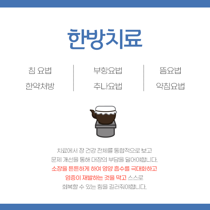 예측 불가능한 배변 욕구로 인해 집중하기 어렵게 됩니다. 염증은 대장의 가장 안쪽 층인 점막과 점막하층에 국한됩니다. 한의학적 관점에서는 장의 염증 상태를 악화시키고 회복을 더디게 만드는 원인을 어혈로 해석하고 있습니다.