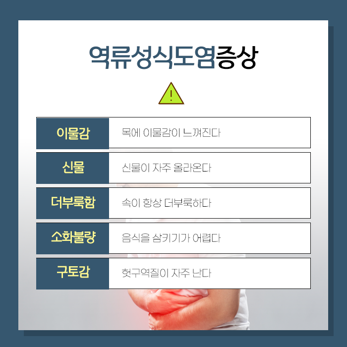 생활 전반과 밀접하게 연관된 중요한 건강 신호로 인식하고 대처해야합니다. 식도는 반복적인 위산 노출에 예민하게 자극을 받아 보호막에 손상이 가며 염증 반응이 생길 수밖에 없는 것입니다.