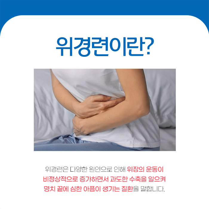 위벽 근육층이 비정상적으로 과도하게 수축하면서 발생하는 통증으로 위가 꼬이는 듯한 느낌을 줍니다. 발작적인 통증은 짧은 시간 안에 나타났다가 거짓말처럼 소멸되기도 하지만 고통의 강도가 심하다면 잠깐이라 할지라도 일상생활을 유지하는 데 방해를 초래할 수 있습니다.길을 걷다가 갑자기 주저앉거나 업무 중에 책상에 엎드려야 하는 등 일이 발생합니다.