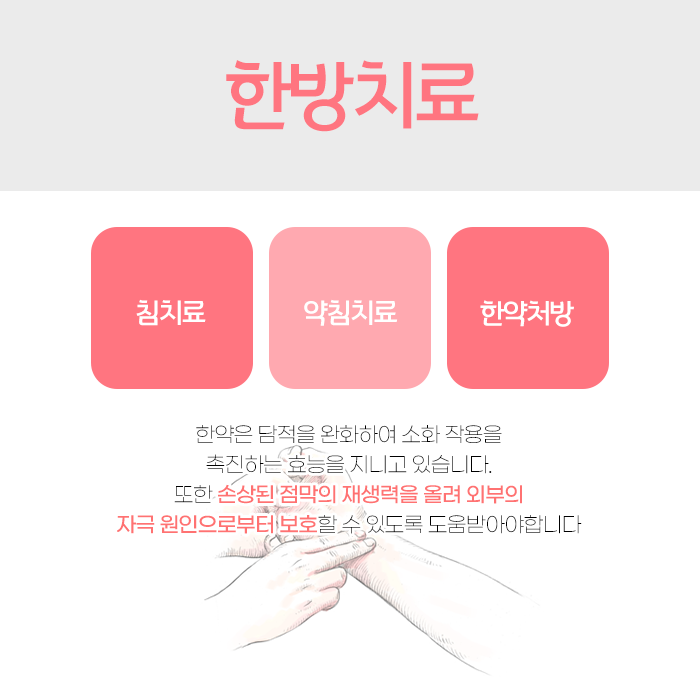 고질적인 상태로 굳어지면 회복이 더욱 어려워질 수 있으므로 명확한 원인을 찾아내기 위해선 도움을 받아보시는 것이 좋습니다. 몸속에 축적된 해로운 물질과 찌꺼기들을 몸 밖으로 내보내야합니다. 소화기 질환뿐만 아니라 몸의 여러 부분에 걸쳐 문제를 유발할 수 있기에 섬세한 처방이 이루어져야합니다.