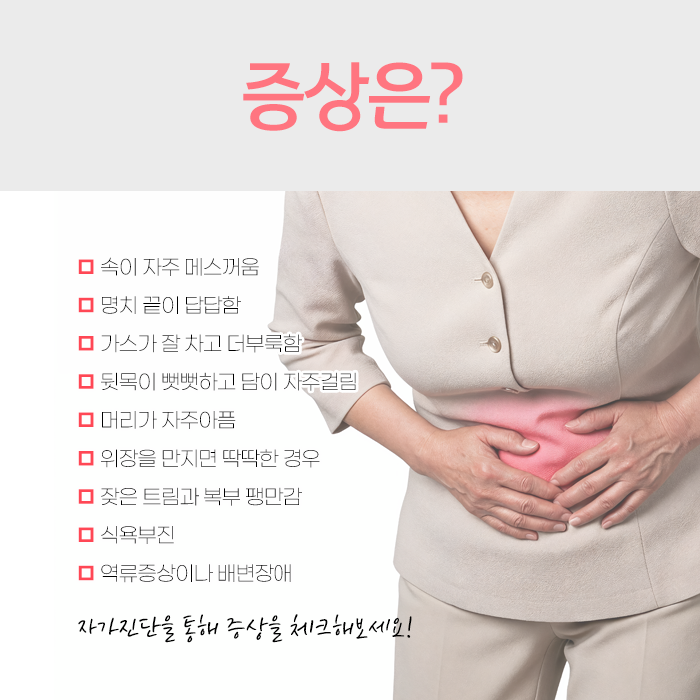 젊은 세대에서는 위장 기능이 저하되어 관리가 요구되는 경우가 많습니다. 소화불량 증세의 한 종류로 노폐 물질이 위장 내벽이 아닌 위장 외벽에 굳어지면서 발생하는 질환으로 파악합니다.
