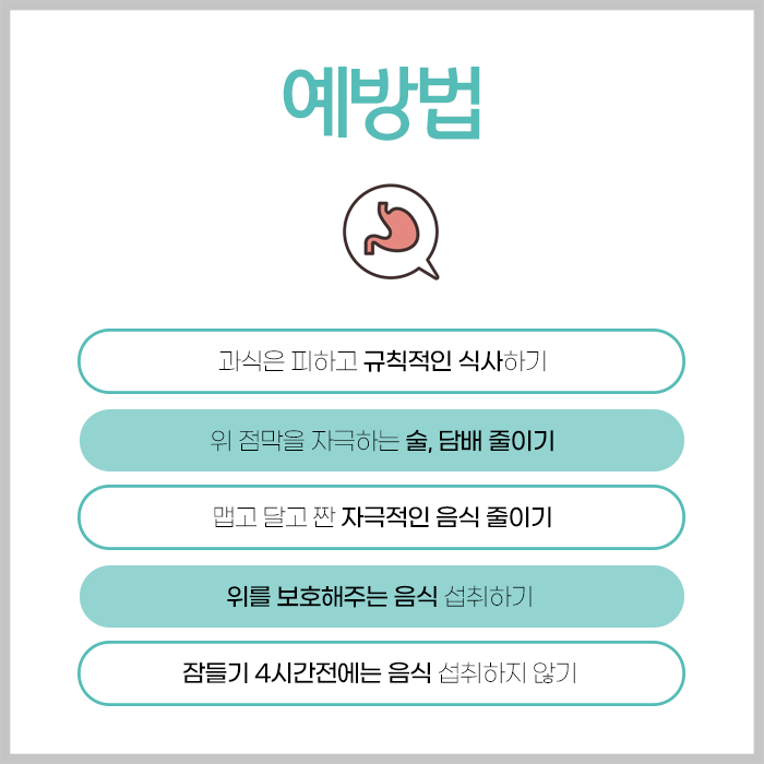 이 균은 위암 발생 위험을 높일 수도 있어 관리 대상입니다. 술은 위 점막을 직접적으로 손상시키고 염증을 유발합니다. 한국인의 식습관과 밀접한 관련이 있습니다. 맵거나 짠 음식, 뜨겁거나 찬 음식, 기름진 음식 등은 위 점막을 직접적으로 자극하여 염증을 유발하거나 악화시킬 수 있습니다.