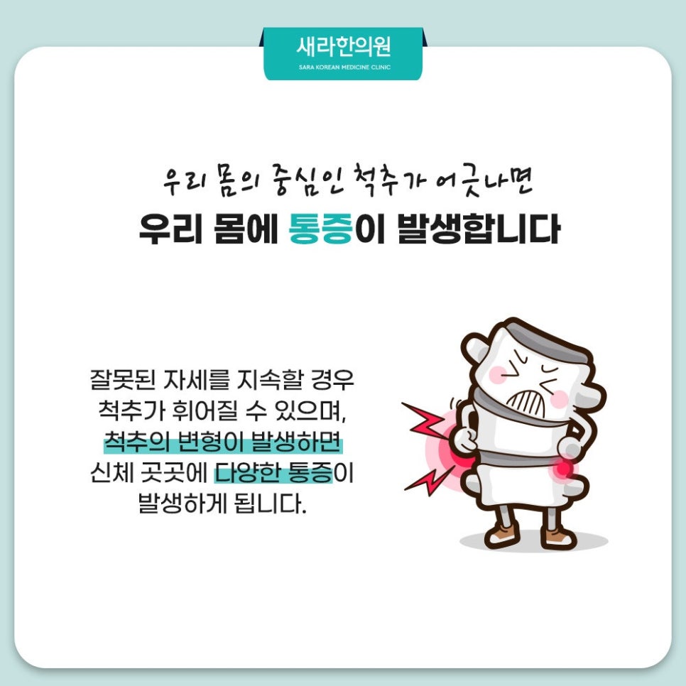 안녕하세요. 저희 한의원에서는 척추 질환 중 하나 강서구척추디스크 정보를 제공드리려 하는데요. 현대 사회를 살아가는 우리들은 하루 중에 많은 시간을 앉은 자세로 업무, 학업을 하면서 보내는데요. 특히 앉은 자세로 업무는 학업을 하면서 스마트폰, 컴퓨터와 같은 디지털 기기를 오래 사용하는 일이 비일비재합니다. 이러한 장시간 디지털 기기를 앉아 사용하면 본인도 모르게 잘못된 자세를 취하기 쉬운데요. 이로 인해서 목, 허리, 어깨 등과 같은 부위에 근골격계 통증이 발생합니다. 이는 올바르지 못한 자세로 인해서 기인한 문제라 볼 수 있답니다. 특히 잘못된 자세를 반복적으로 그리고 지속적으로 취하면 척추에도 무리가 가면서 척추디스크 취한다면 척추에도 무리가 가면서 척추디스크와 같은 질환을 유발해 주의해야 할 것입니다.