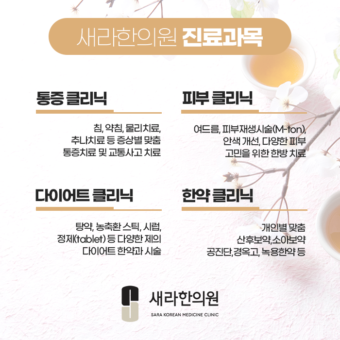 마곡동주말진료한의원 새라한의원은 섬세한 진단 및 치료로 증상을 개선하고 재발되지 않도록 정성을 다한답니다.