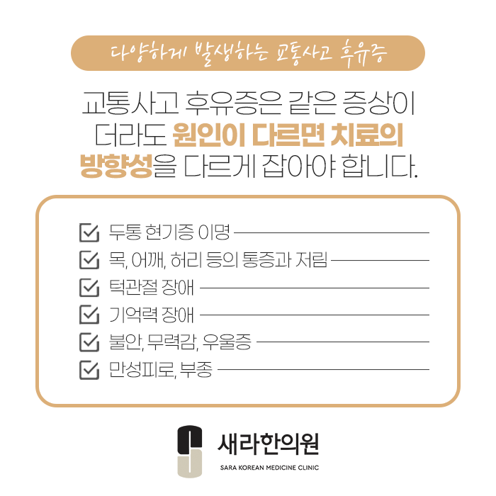 교통사고로 두통, 이명, 무력감, 소화불량 등의 신체 기능도 저하될 수가 있지요.