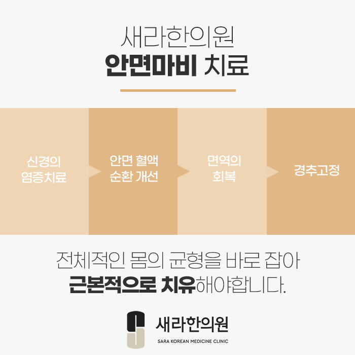 이같은 안면 마비는 신경길이 손상되었다거나 안면의 신경길 주변 조직이 약해짐에 따라 신경 흐름이 원활하지 않아서 신경 재생력이 떨어지면서 신경이 마비되게 됩니다.