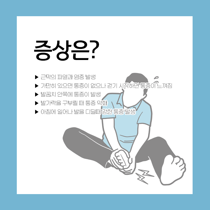 몸의 모든 움직임은 발에서 시작됩니다. 발은 매일 체중을 지탱하고 이동의 기본적인 역할을 수행합니다. 한두 번 겪고 지나가는 통증이라면 무시할 수 있지만 매일 아침 또는 휴식 후 첫발을 내디딜 때 통증이 반복된다면 원인을 확인해야 합니다. 처음에는 발바닥이 피로하고 뻐근한 느낌이었지만 시간이 지나면서 통증의 양상이 변하고 찌릿하고 날카로운 통증이 반복적으로 나타납니다.